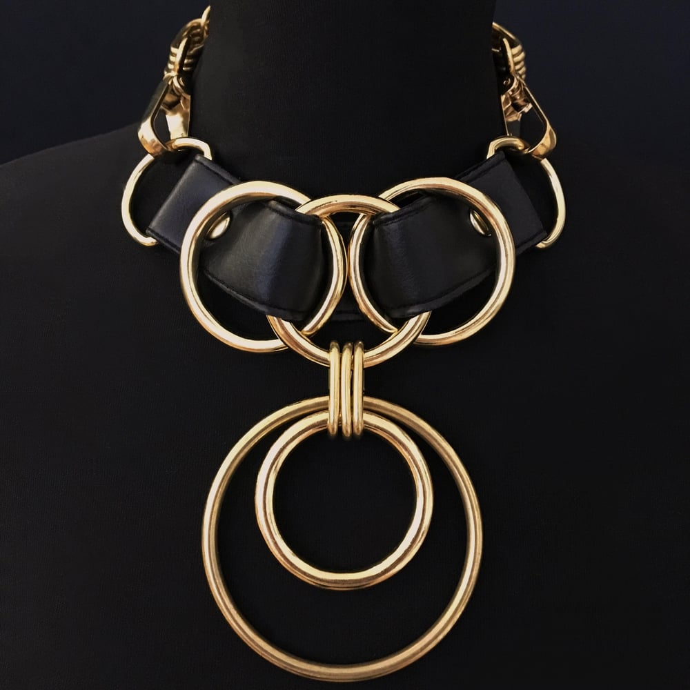 Clip necklace in vegan leather with small ring
