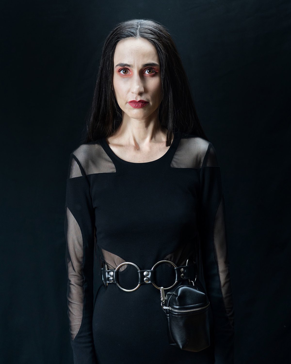 The bag is constructed in vegan leather and measures 12cm x 8cm and is 5cm deep. It has a zip opening at the front. The back of the bag has two metal clips sewn into the seam allowing the bag to be attached and removed from the belt with ease.